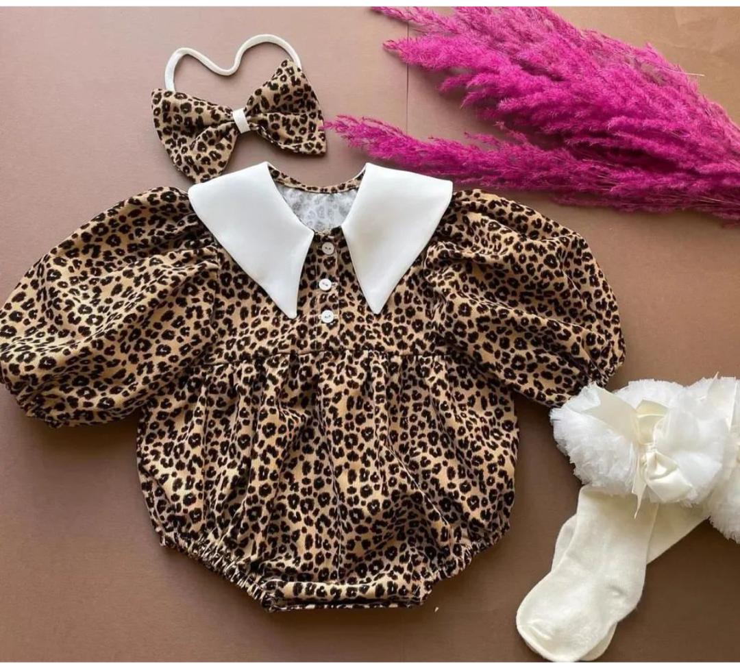 خانه دخترانه بادی پلنگی یقه سفید با هدبند