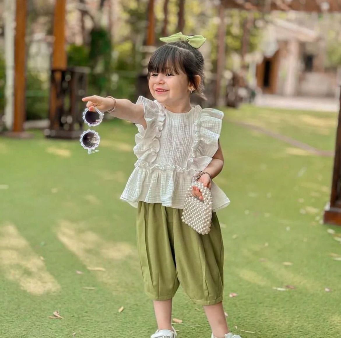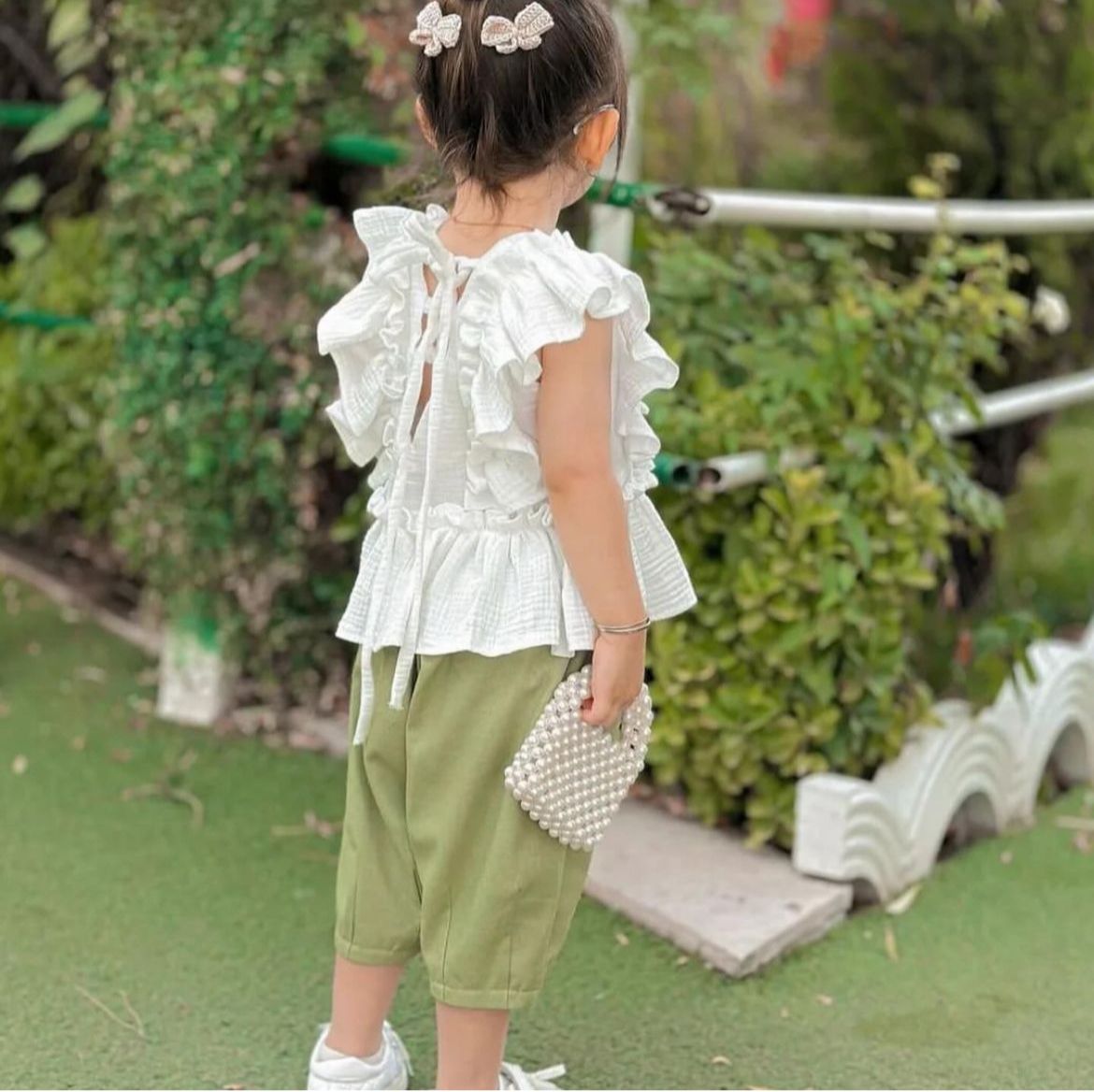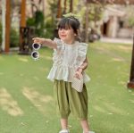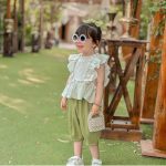 خانه دخترانه تاپ و شلوارک موسلین سفیدسبز